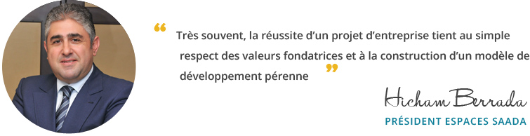 La réussite d’Espaces Saada tient au respect des normes de qualité initiées et adoptées par Palmeraie Développement qui a développé une expertise dans le secteur du Luxe et auquel l’entité appartient. C’est en effet une volonté managériale que d’offrir aux acquéreurs du social un produit de qualité, durable et distinctif. Aujourd’hui, grâce à l’héritage culturel légué par le groupe, Espaces Saada est reconnu comme acteur de référence, avec un positionnement unique dans le secteur.